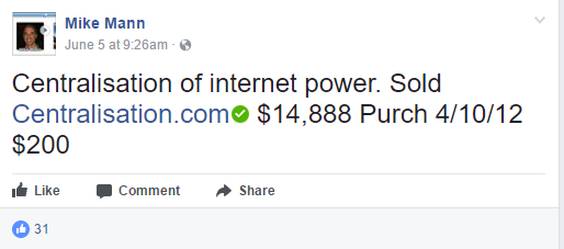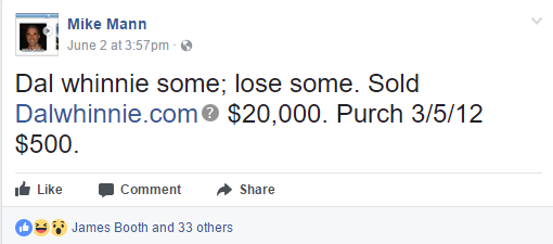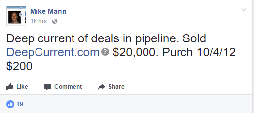 大佬Mike Mann半个月域名交易超10万美元!成本最低仅8美元!西部数码(west.cn)6月16日消息,说起大佬Mike Mann,米友们应该并不陌生了:域名出手频率高,成本低,交易价格却常常让人瞠目结舌。近日外媒整理发现,Mike Mann近半个月域名交易总额已超10万美元, 其中,有的域名成本竟然仅为8美元。 域名DeepCurrent.com注册于2004年9月,直译为“深层流”,适合搭建网络服务类平台。该域名成交价为20,000美元,约合人民币13.6万元。成本为200美元。 域名ourtree.com成交价为17,000美元,直译为“我们的树”。该域名由Mike Mann 于2009年仅花85美元收购。 组合域名wellofthesoul.com由Mike Mann公司于2012年5月注册,成本仅为8美元。该域名直译为“灵魂之井”,适合搭建矿泉水等饮料品牌。小编搜索发现,该域名对应一首流行歌曲《The well of the soul》。 另一个组合域名sunchat.com则注册于2003年,直译为“阳光聊天”,2012年8月由Mike Mann花150美元收购而来,很适合搭建聊天类软件以及社交论坛等。此前迪拜就有一款名为sun chat社交APP与之对应。 另外,域名Centralisation.com和Dalwhinnie.com则分别以14,888美元和20,000美元成交,成本分别为200和500美元。其中,Centralisation.com是“集中”的意思;Dalwhinnie.com则对应“达尔维尼”洋酒。 本文转载自新闻资讯,原文链接:大佬Mike Mann半个月域名交易超10万美元!成本最低仅8美元!