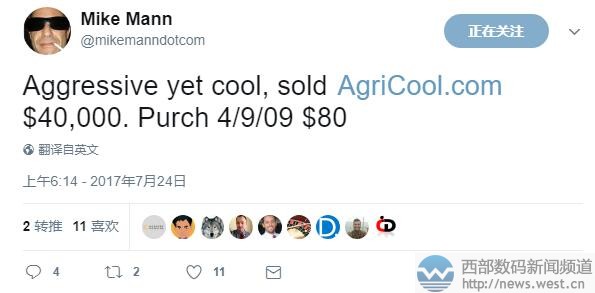 成本仅80美元!Mike Mann以27万元售出“农业”域名西部数码(west.cn)7月25日消息,昨天国外大佬Mike Mann发推称,英文域名AgriCool.com以40,000美元成交,约合人民币27元。而这枚域名当时的成本仅为80美元,人民币539元。 域名AgriCool.com注册于2004年2月,2009年4月被Mike Mann收购。该域名主体中的“Agri”一词,既可看做agriculture(农业)的简写,也可视为aggressive(侵略性的,进取心),cool则是“冷却、酷”的意思。总的来说,域名AgriCool.com可以用于农业领域,对应有法国农业初创企业 Agricool;也可以搭建冷藏终端平台。 Mike Mann在域名销售以低买高卖见长,域名AgriCool.com也不例外。2009年收购价仅为80美元,如今身价倍增,达到了40,000美元,获益数百倍。 除了AgriCool.com以外,Mike Mann近日还出售了长字符英文域名theemeraldhotel.com,成交价为16,000美元,约合人民币10万元。该域名直译为“绿宝石/翡翠酒店”,非常适合酒店行业,目前对应有泰国绿宝石饭店。该域名在2012年8月由Mike Mann花7美元注册,时隔5年也是获益颇丰。 从以上两个域名的交易情况来看,虽然Mike Mann有着不凡的域名销售能力,但这两个域名的收购注册也都是发生在好几年前,如果不是有眼光有毅力,这两个域名恐怕也是熬不到五位数身价的。 本文转载自新闻资讯,原文链接:成本仅80美元!Mike Mann以27万元售出“农业”域名