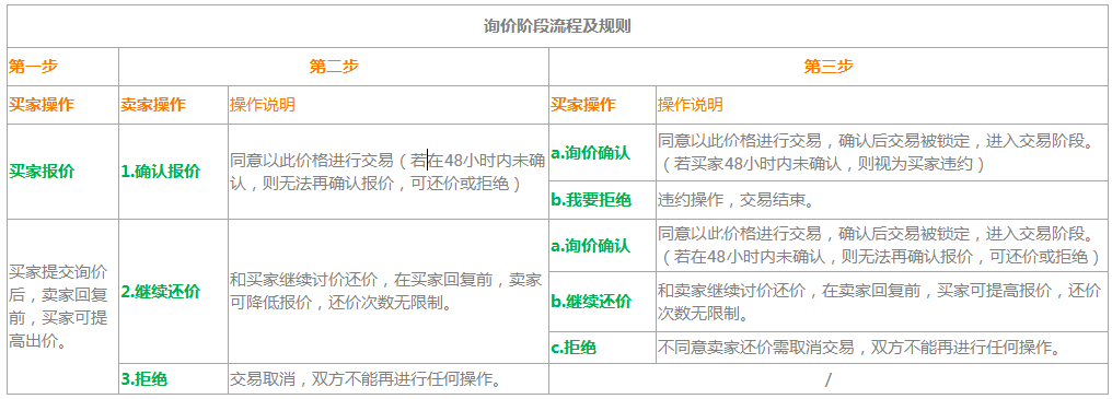 询价交易规则目录 卖家发布询价时设置一个最低出价,以过滤心理价位差异太大的报价,买家报价后,买卖双方可讨价还价,最终确认报价后完成交易。 西部数码询价交易有三个阶段:发布交易,询价阶段,交易阶段。 成功交易流程: