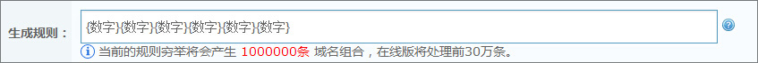 问题7:我要查询的量太大了,无法查询,怎么办? 回答:有的时候我们可能会查询太多的内容,但是查询量太大,不太容易操作和后期筛选,可以对您要查询的内容指定1至多位查询值,这样可以缩小查询范围,提高查询速度,同时也减轻了大家筛选域名的工作量。 如我要查询6位数字的可注册域名,而查询显示会生成100万条记录,这个值显然是太庞大了。