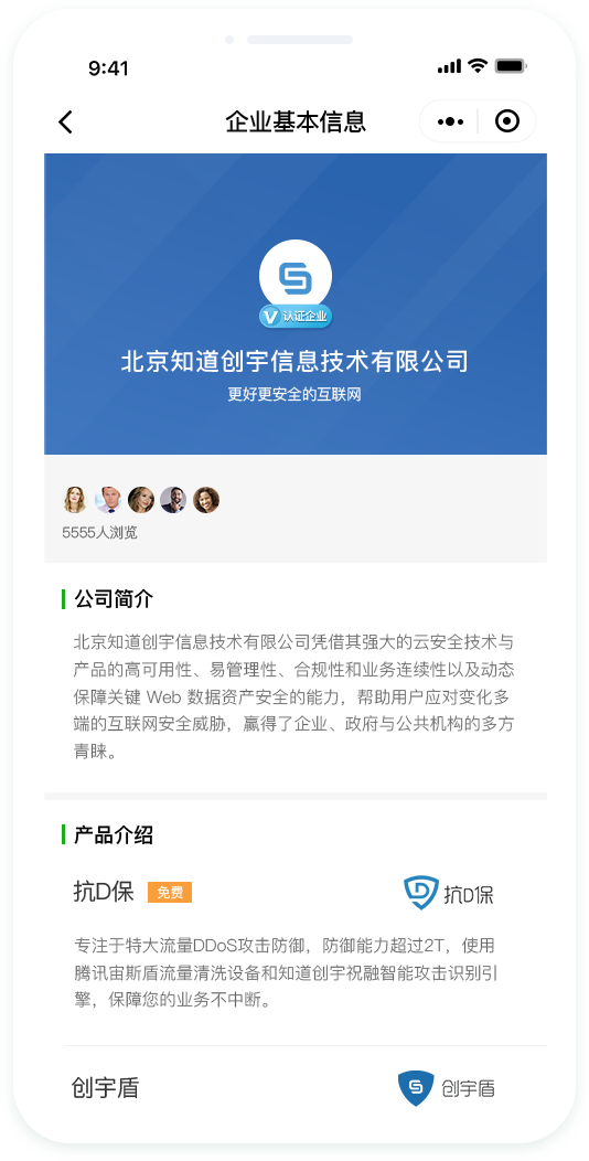 企业认证通过后,您的网址将被QQ收录,可以将您的网站快速在9亿QQ用户中传播扩散,帮助您维护企业形象。