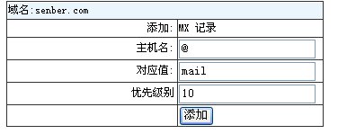 主机名一般填: @ ,对应值一般填mail, 优先级别填10, mail主机已经在刚才通过别名指向mail3.myhostadmin.net邮件服务器。这两步结合起来就完成了域名MX记录的设置。