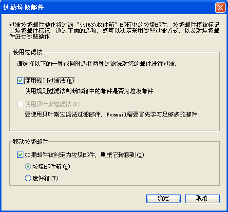 图四 反垃圾邮件选项——贝叶斯过滤