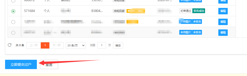 选择对应的模板,点击“立即提交模过户":