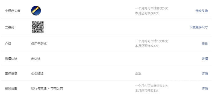 微信认证入口:登录小程序 - 设置 - 微信认证详情