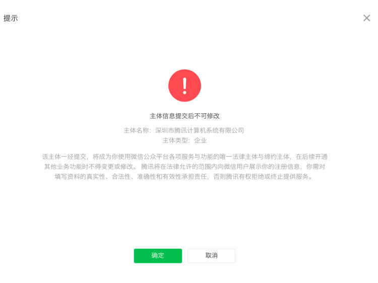 确认主体信息不可变更