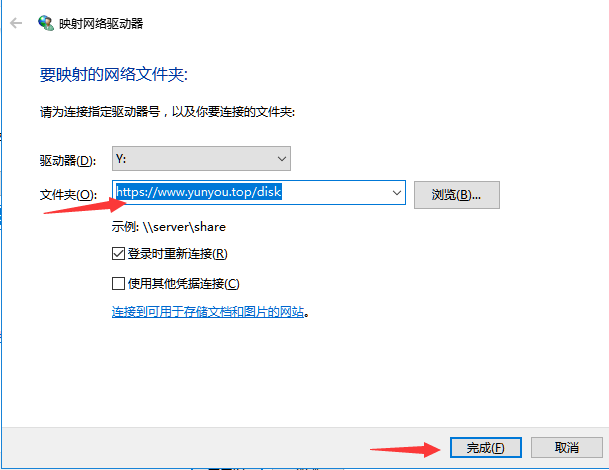 c)输入网盘地址 https://www.yunyou.top/disk 点击完成