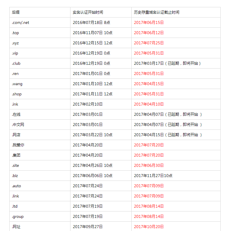 开始认证时间和存量域名认证截止时间如下: