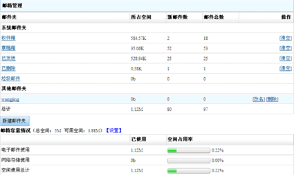 这个界面主要是显示用户邮箱使用情况列表和邮箱管理,操作如下: