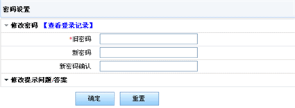 在这个页面里您可以重新设定邮箱的密码,以及重新设定提示问题和问题答案。可以在此修改你的密码和找回密码所需要的提示问题及答案,也可以只修改密码或提示问题,如果你只修改密码或提示问题,你必须确保你不修改的项为空,点击“确定”按钮即可,在修改密码的过程中,系统会提醒你新密码的安全强度,以便您能够提高自己密码的强壮性。在此页面中也可以点击“查看登录记录”来查看您的登录历史。如下图: