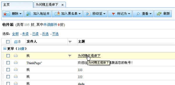 2. 读邮件 2.1 打开邮件 进入收件箱,点击邮件列表一封信的主题链接,进入读邮件页面。