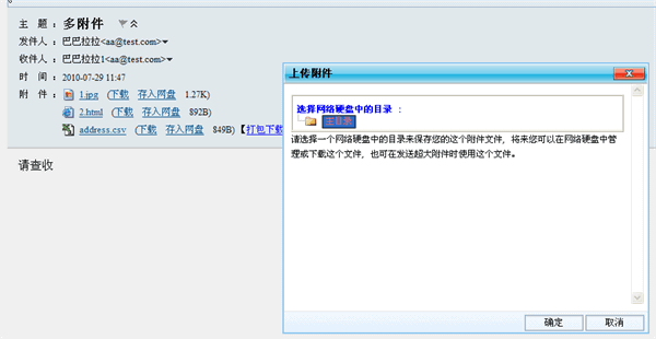 2.16 附件保存网盘 点击附件后的存入网盘,然后选择想要存入的网盘目录,将附件保存到您的网盘上。