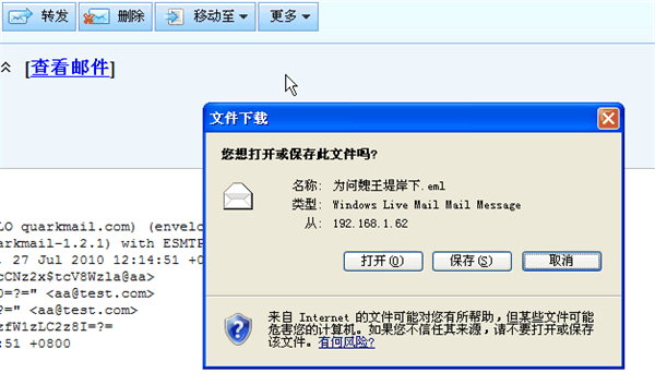 2.8 下载邮件 点击【更多】->【下载邮件】,下载格式为.eml的邮件到本地电脑。
