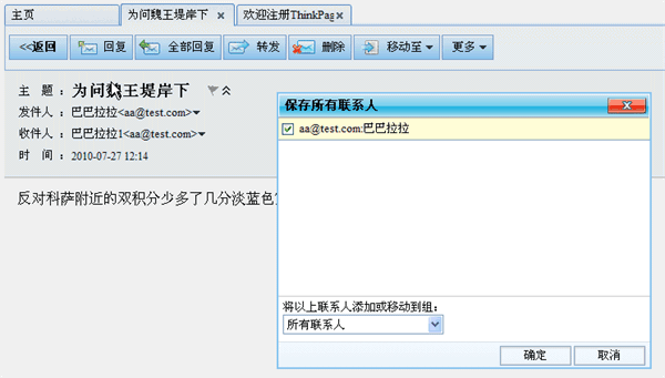 2.13 保存所有联系人 点击【更多】-【保存所有人】,将此封邮件所关联的所有人的email添加到个人通讯录中。如下图所示: