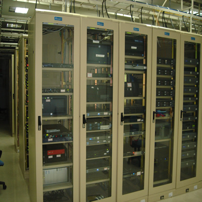 | 空调系统 | ·环保绿色机房专用精密空调系统 ·两台机房专用空调,保证IDC机房常年恒温23± 2°C ,恒湿 45%。 ·每个精密空调的制冷模块可互相作为备份。 ·新风系统使机房内保持足够的新鲜空气,以及维持洁净区域空气正压。 |